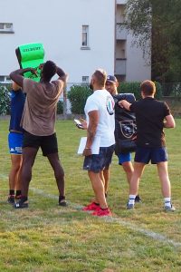 L’objectif est de parfaire la préparation physique des rugbymen en travaillant sur le cardio et sur du renforcement musculaire avec des exercices nouveaux en lien avec les techniques enseignées au rugby en fonction de la spécialité de chacun sur le terrain.
