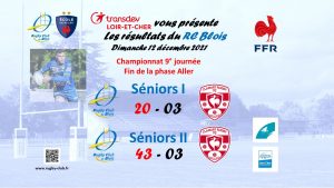 Les Séniors I s’imposent à domicile avec le bonus offensif 20 -03 : Mi-temps : 03-03. RC Blois : 3 essais Thibault SAITER (45°), Youssef MANAI (56°), Léo MOLIARD (79°), 1 transformation Léo MOLIARD (80°), 1 Pénalité Léo MOLIARD (8°); CLAMART RUGBY 92 : 1 pénalité (11°).