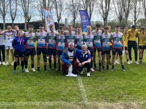Les U18 champions de France UGSEL 2024 de rugby à 7 (avec François ROCHE-BAYARD et André GOSSEAUME au centre)